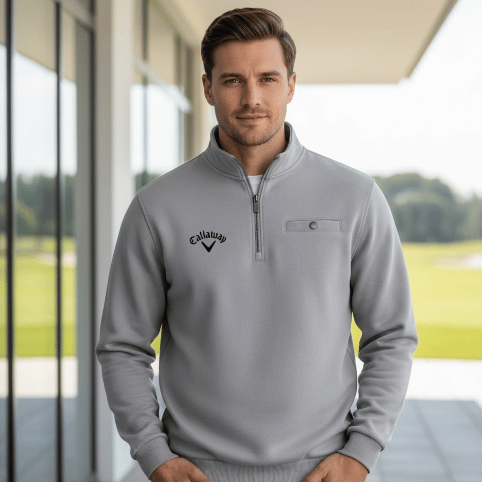 The half-zip closure and stand collar give the sweatshirt a clean, modern look while allowing you to adjust your comfort level easily. The solid color and minimal branding make it easy to style with anything — from jeans to chinos.